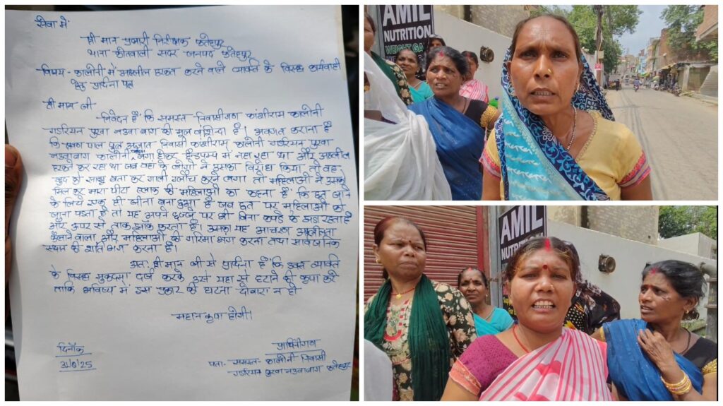 महिलाओं का कहना है कि आरोपी युवक सार्वजनिक हैंडपंप पर नहाते समय अश्लील हरकत करता है। जब स्थानीय लोगों ने विरोध किया तो वह गाली-गलौज पर उतारू हो गया और खुद को “साबू” नाम बताकर दबंगई दिखाने लगा। बताया गया कि छत पर जाने के लिए कॉलोनी में एक ही रास्ता बना हुआ है और जब महिलाएं वहां से गुजरती हैं तो आरोपी युवक बिना कपड़ों के अपने छज्जे पर खड़ा हो जाता है, जिससे महिलाओं की गरिमा भंग होती है।