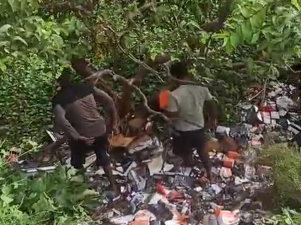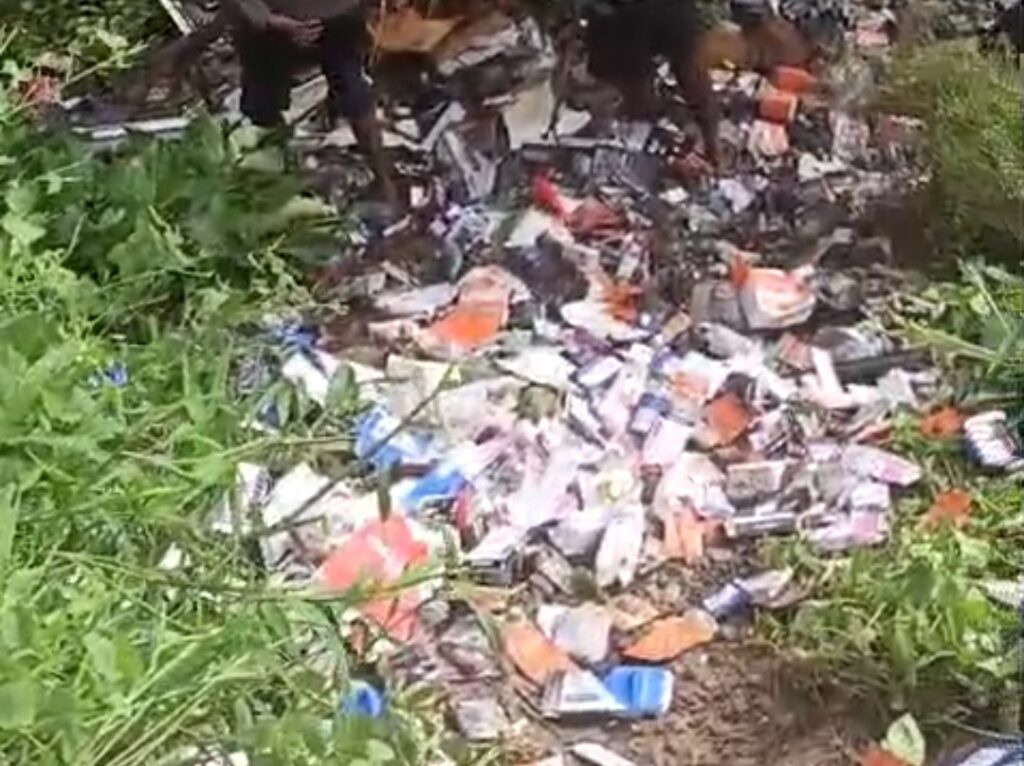 स्थानीय लोगों ने मौके पर पहुंचकर बोरियों और झोलों में भरकर दवाएं उठाना शुरू कर दिया। देखते ही देखते वहां लूट जैसी स्थिति बन गई। सूचना मिलते ही पुलिस मौके पर पहुंची और हालात पर काबू पाया।